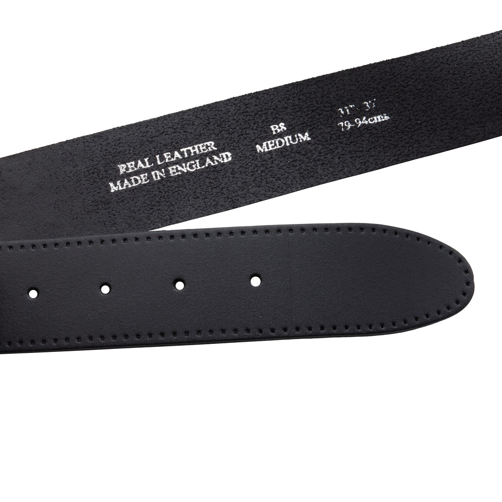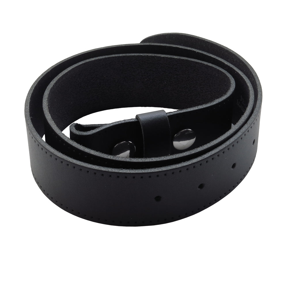 High quality, 1.5" (38mm) wide, black split leather belt straps with press-stud fastenings to accept any jeans-belt buckles.
